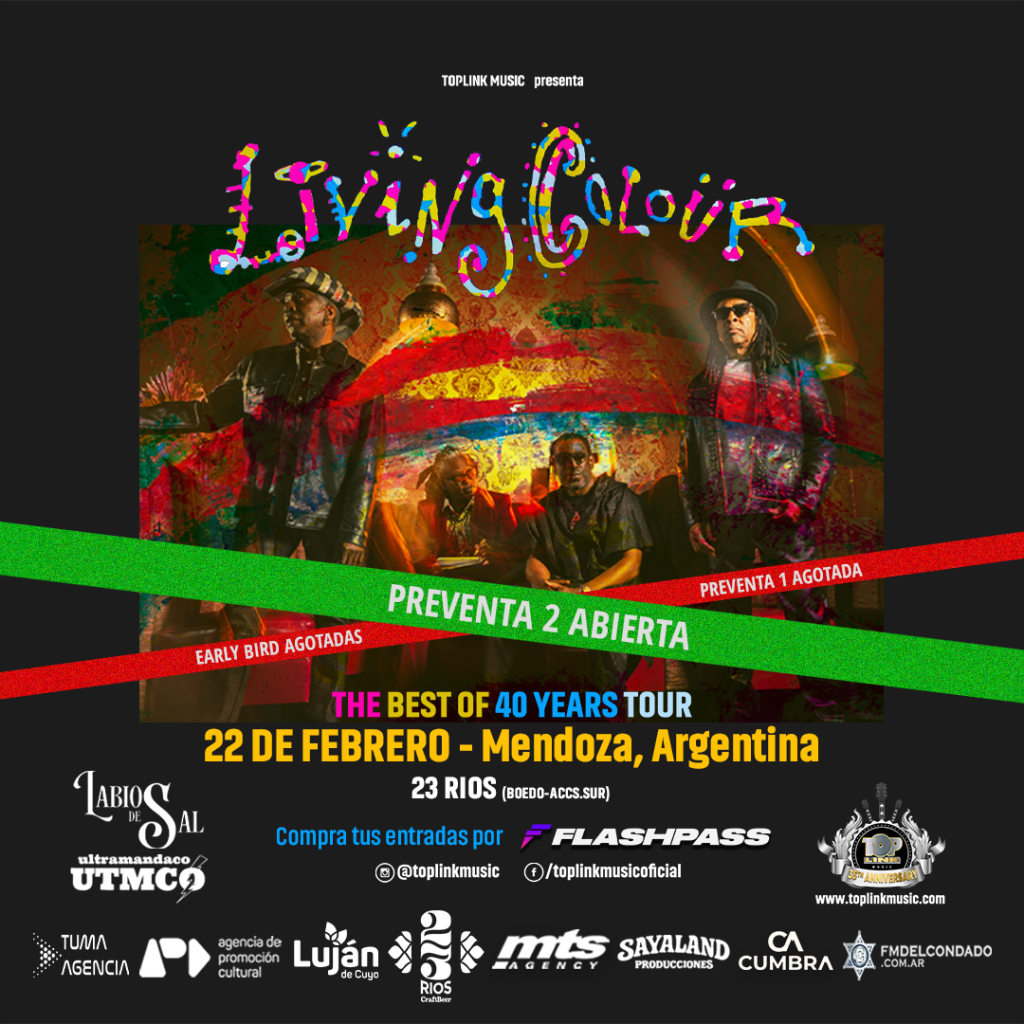 Por primera vez en su historia, Living Colour desembarca en Mendoza para celebrar cuatro décadas de trayectoria con su gira internacional “The Best Of 40 Years Tour”. La banda neoyorquina se presentará el domingo 22 de febrero en 23 Ríos (Boedo y Acceso Sur, Luján), en lo que será uno de los shows internacionales más destacados del año en la provincia.